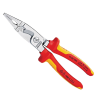 ■ Alicates multifuncionales para instalaciones eléctricas; para sujetar material plano y redondo, doblar, desbarbar, cortar cables, pelar y crimpar punteras huecas
